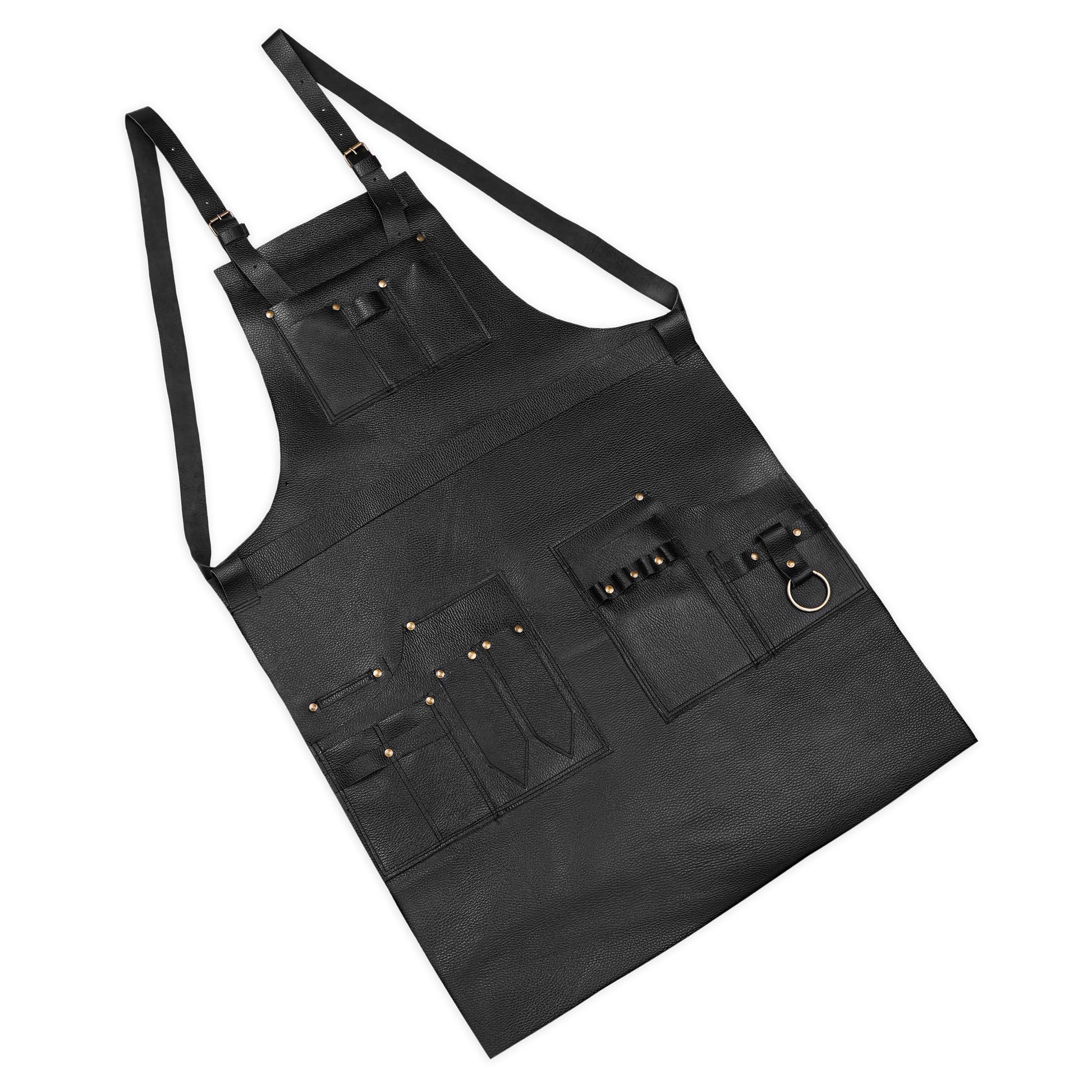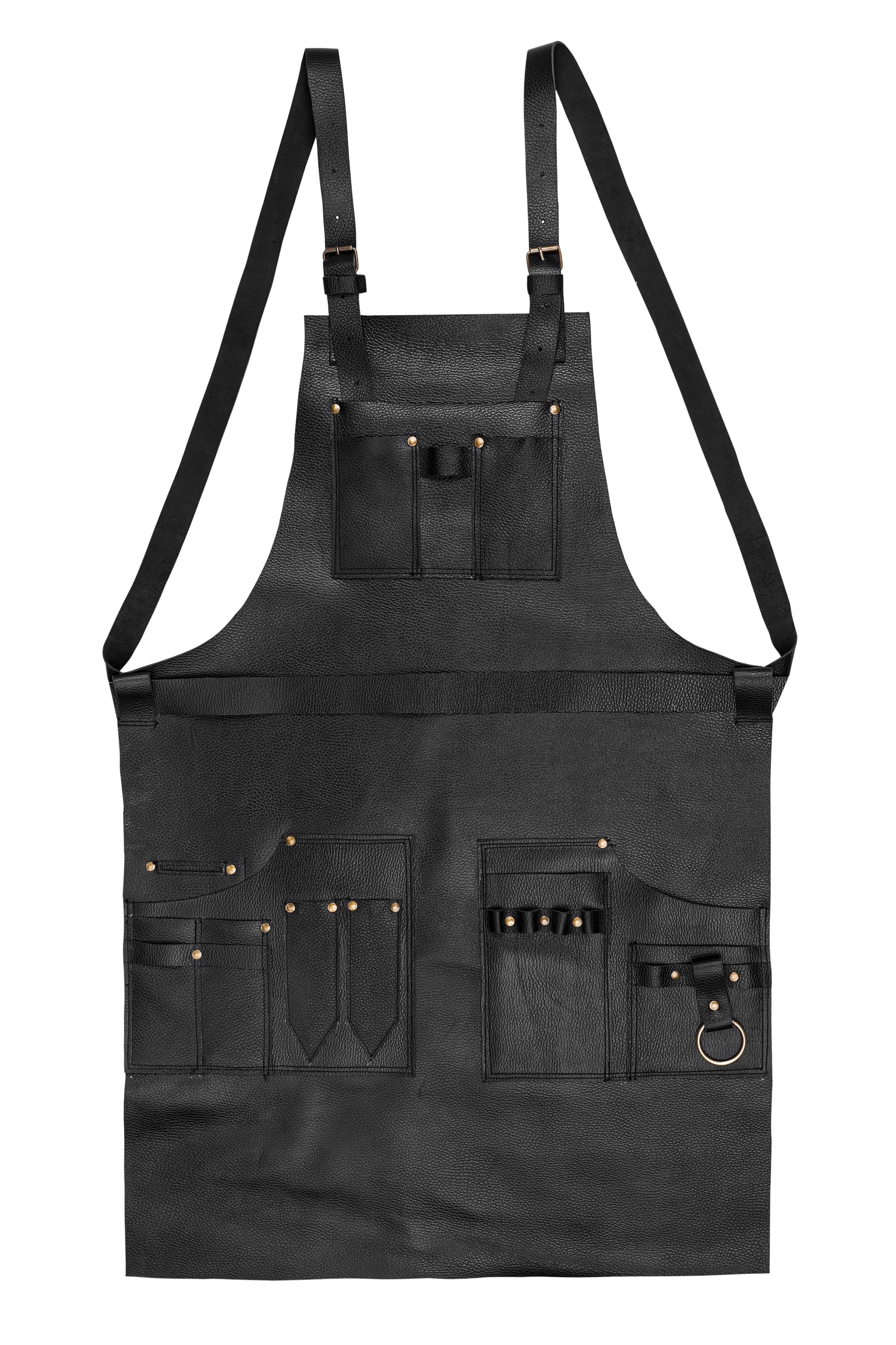 Its adjustable leather straps with solid brass buckles provide a secure, custom fit, while front pockets and loops keep your tools organized and within arm’s reach. Whether you're cutting, styling, or grooming, this apron keeps you comfortable, clean, and looking sharp. Add a personal logo, initials, or quote for a premium touch.
